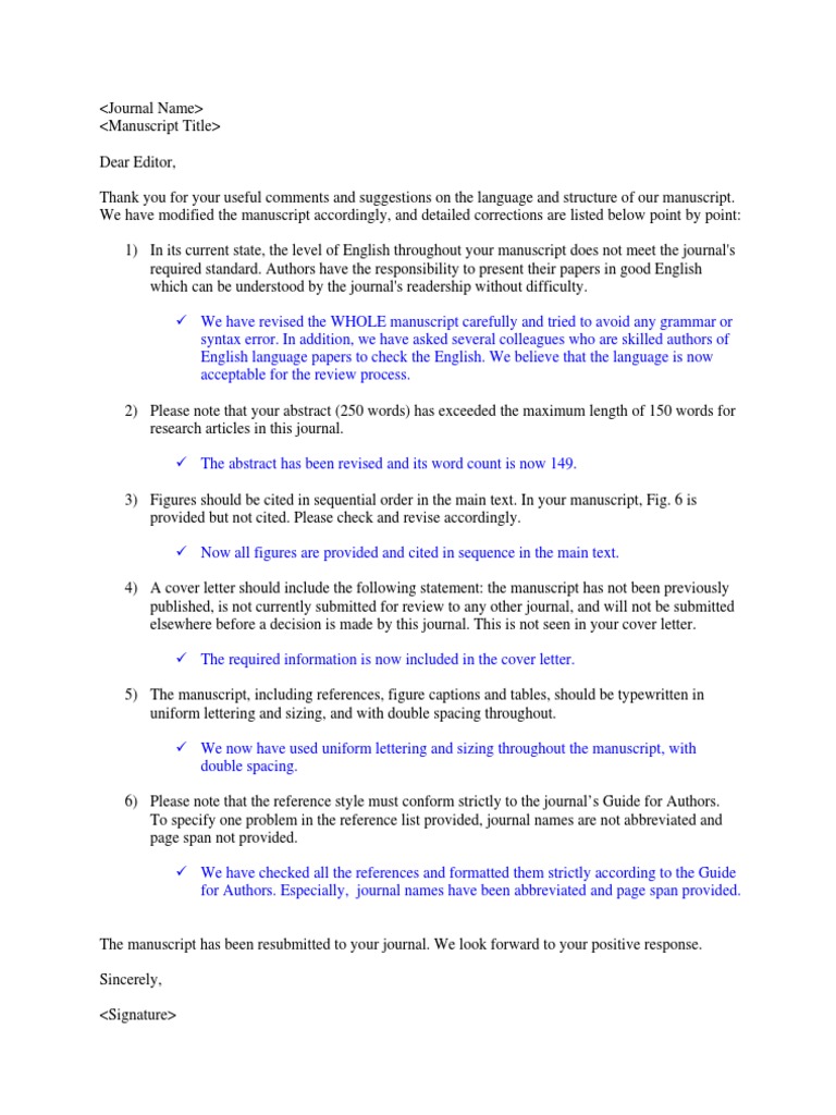 Writing Effective Response Letters To Reviewers Tips And A Template from thinkscience.co.jp We did not find results for: Check spelling or type a new query. Maybe you would like to learn more about one of these? Cover letter to journal editor example.